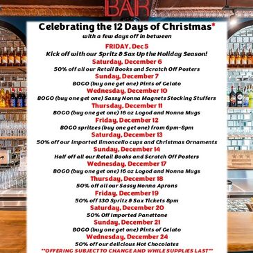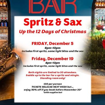 Join us for two different nights to Spritz & Sax up the 12 days of Christmas.
